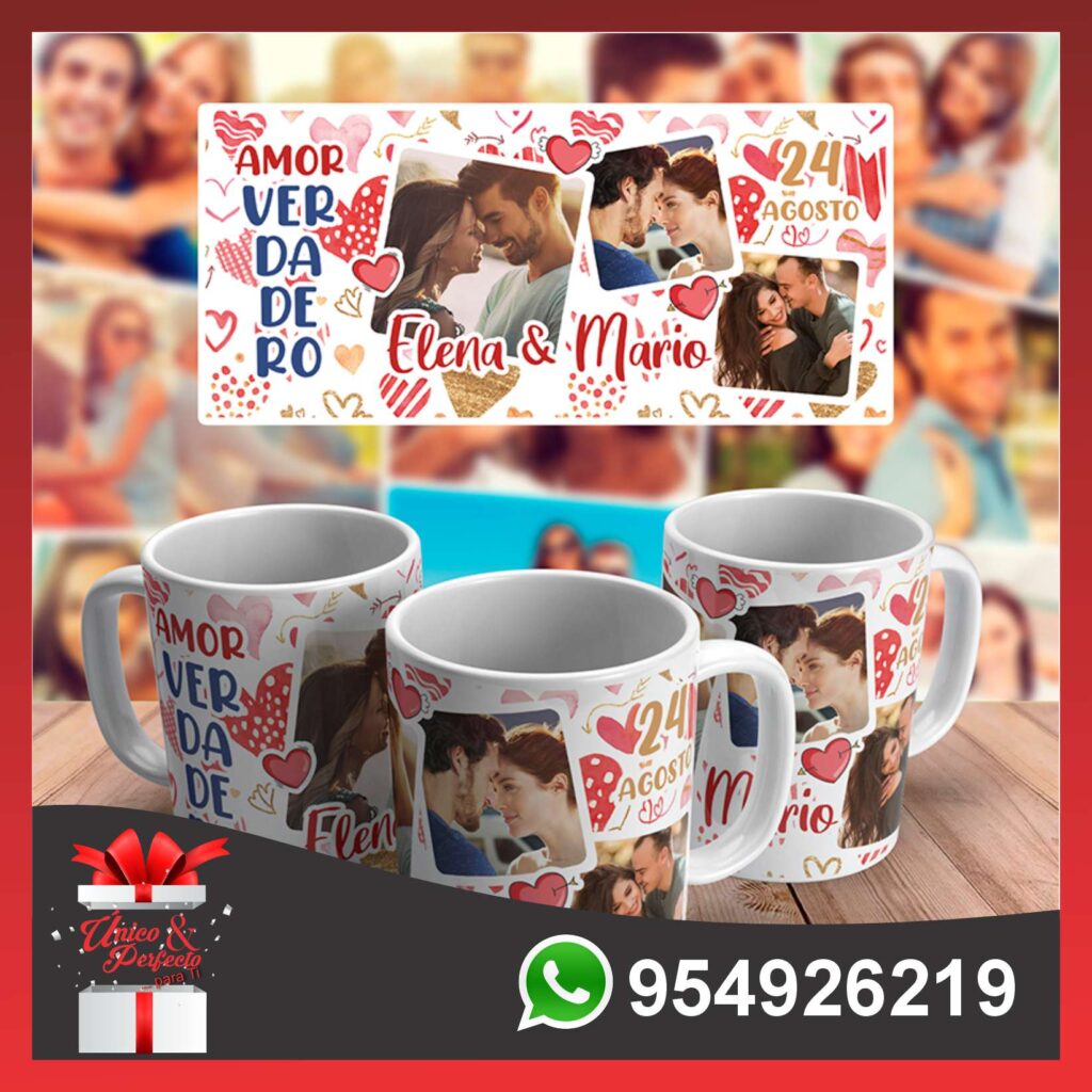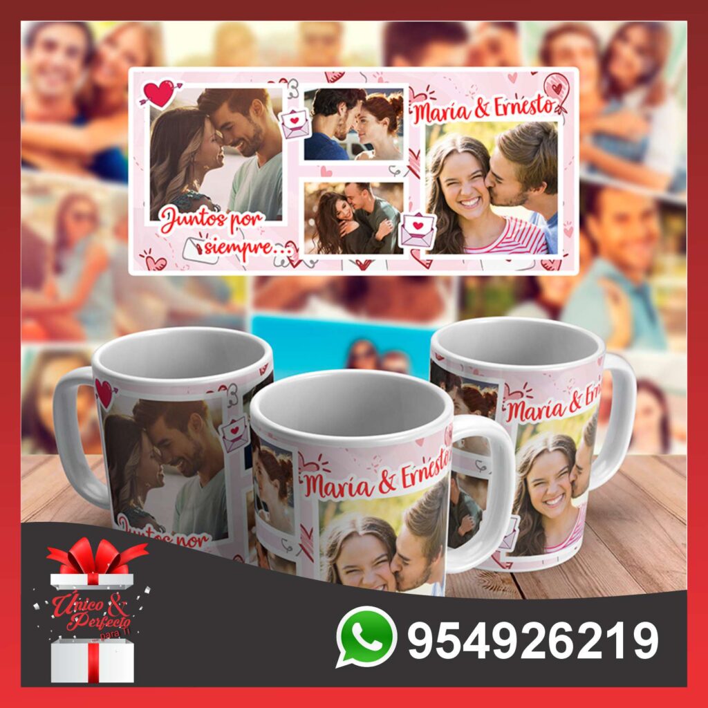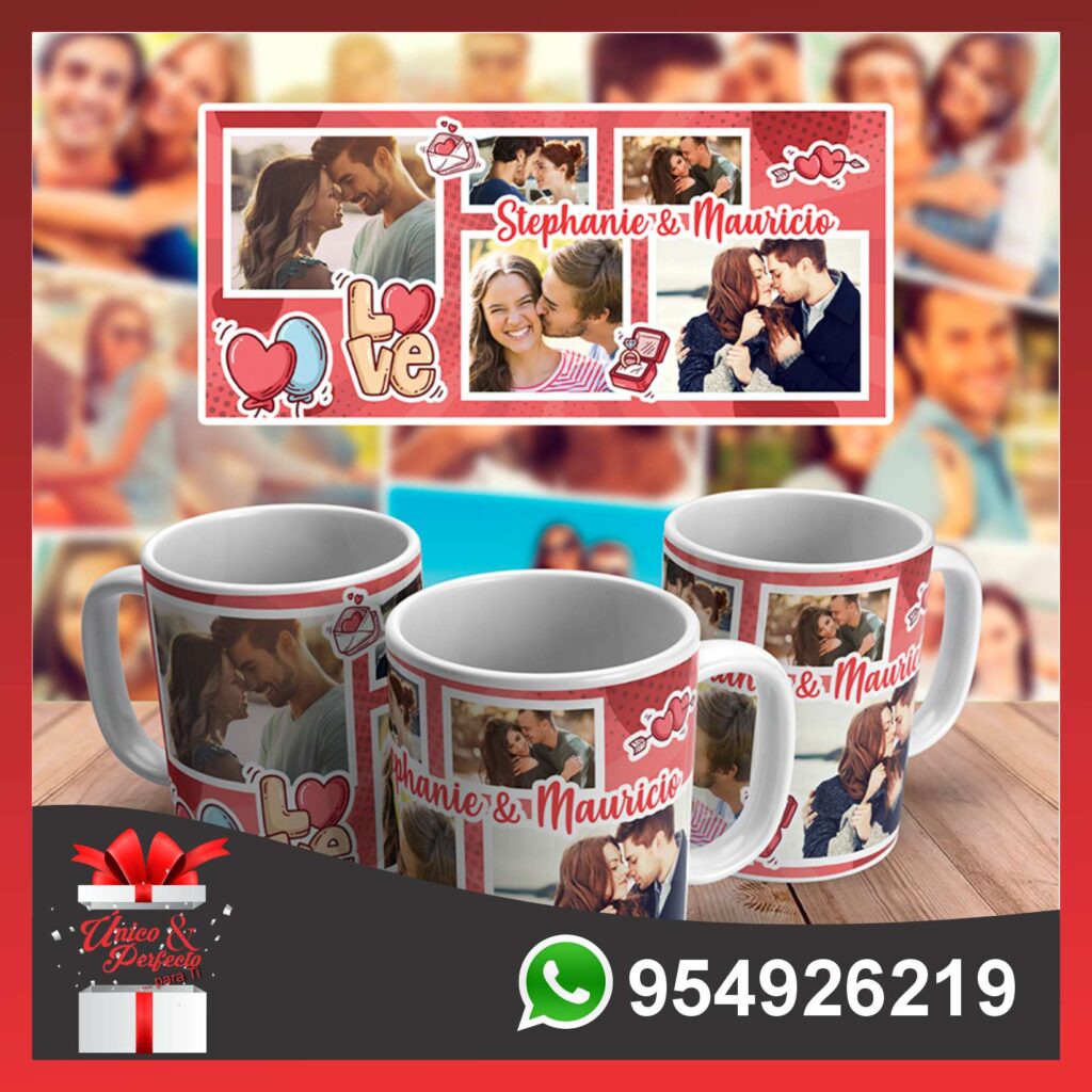 Nuestras tazas personalizadas son el regalo perfecto para cualquier ocasión. Están hechas de cerámica de alta calidad y se pueden personalizar con la foto de tu pareja, una frase de amor y dibujos.
